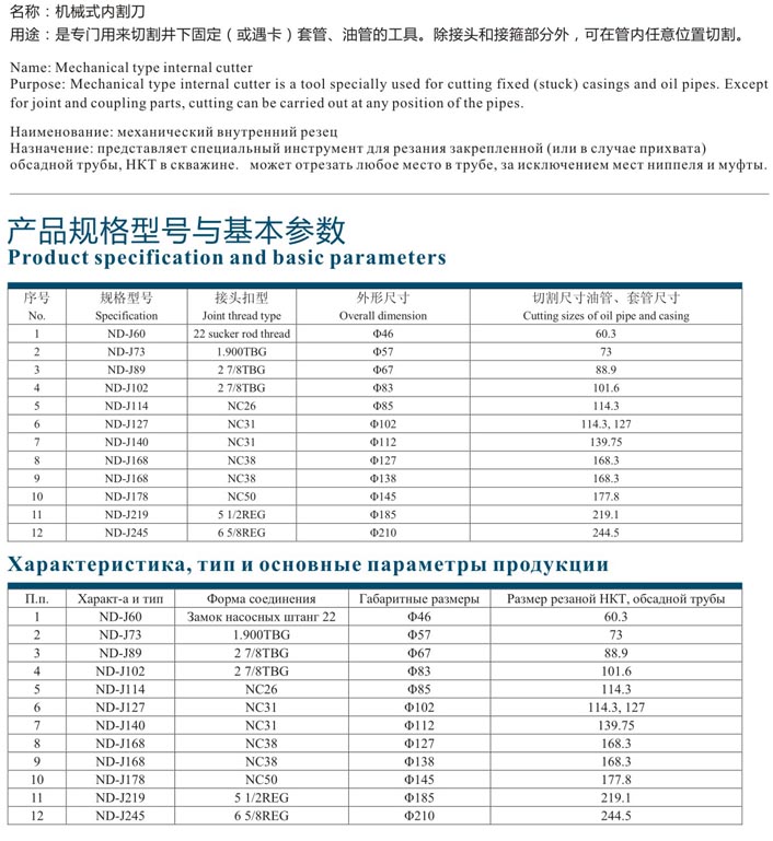 机械式内割刀 详细参数